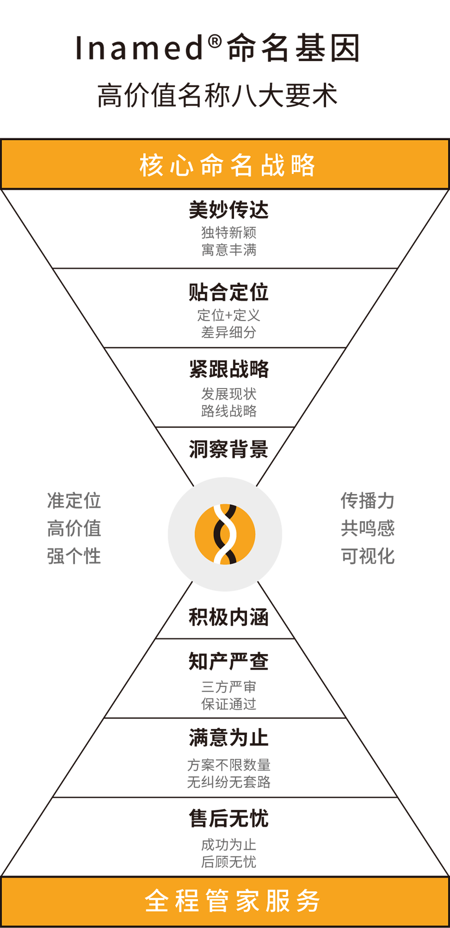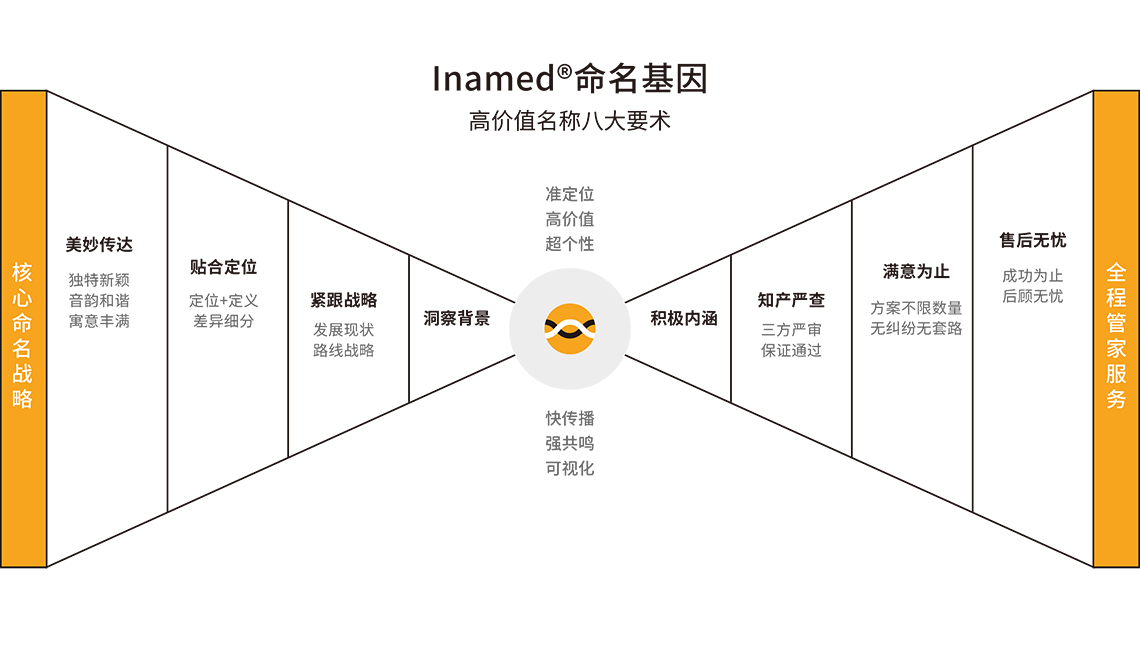 根據(jù)目標(biāo)群體需求特征以及品牌起名定位,通過字義、字音、字性等多種方法,創(chuàng)意命名方案;對(duì)名稱進(jìn)行商標(biāo)注冊(cè)系統(tǒng)篩查等。